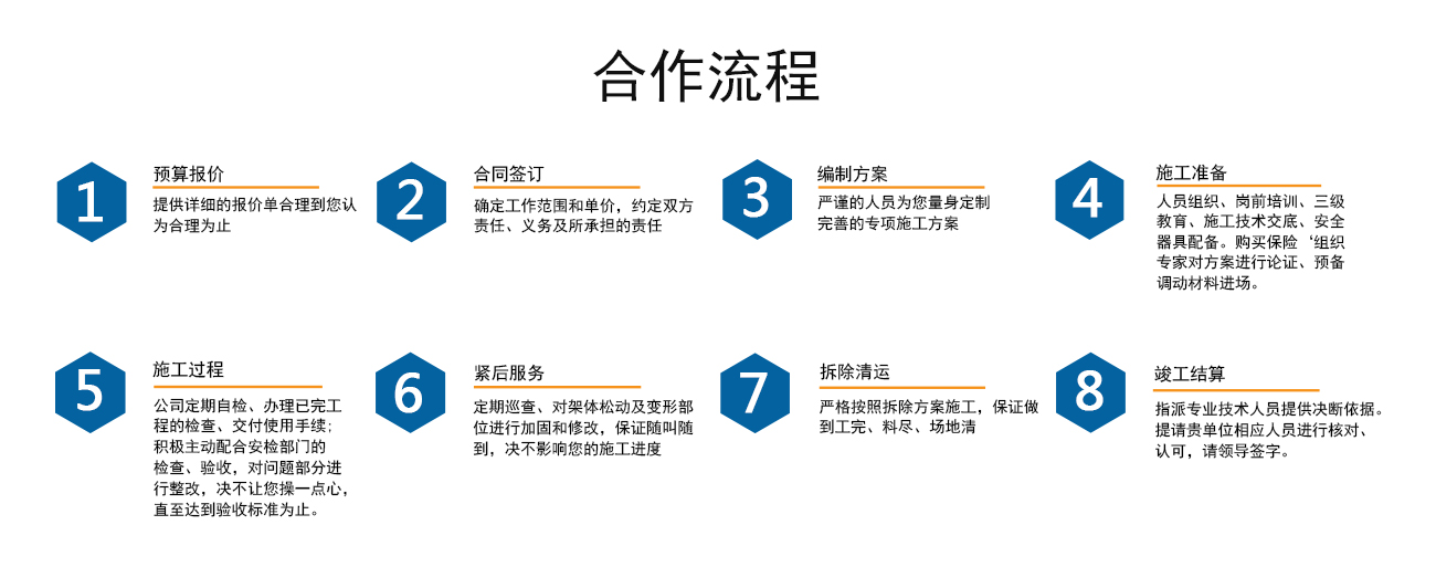 安徽海洋建筑工程機械租賃有限公司、淮南佳輝建筑工程有限公司是由淮南興勝鋼管租賃公司起家的,從事專業腳手架資質分包、鋼管、扣件、槽鋼、頂托、接管器、裝飾腳手架搭設、吊籃、搭吊等機械設備的租賃業務。公司成立于1999年,憑借著專業水準和成熟技術,在業內迅速崛起并不斷發展創新。